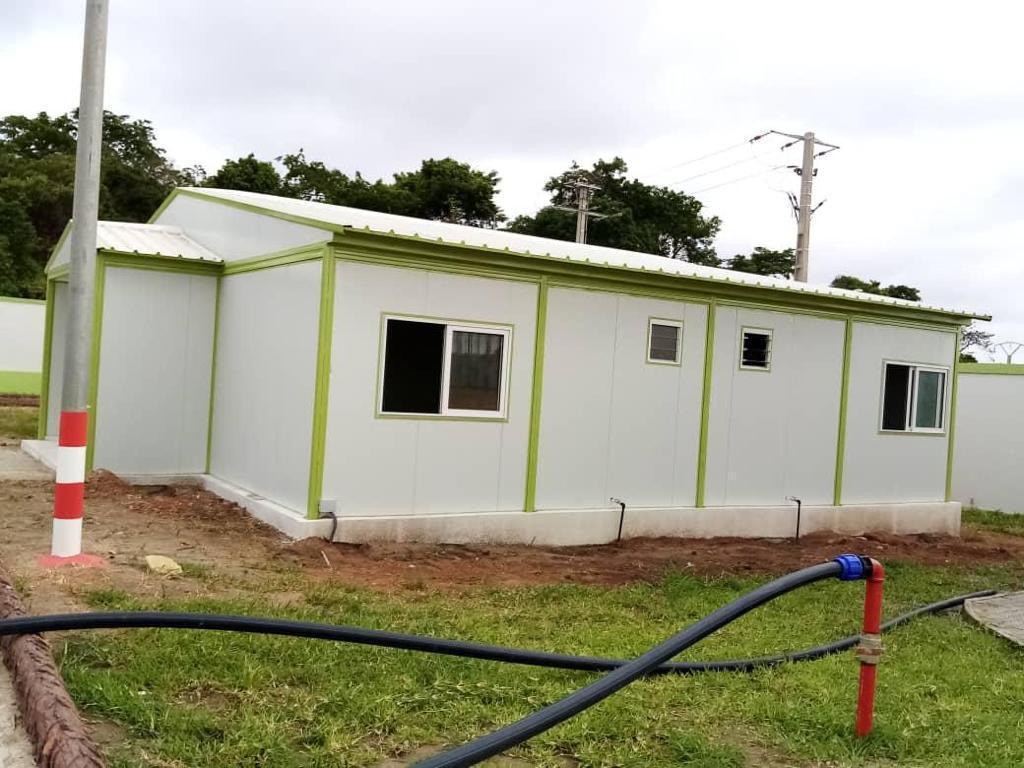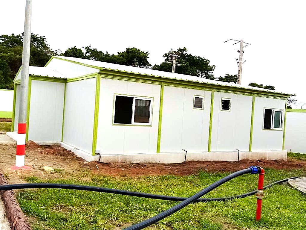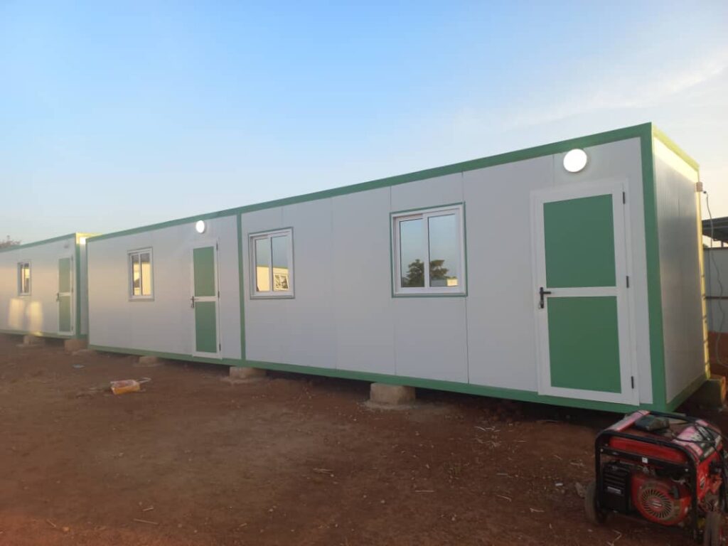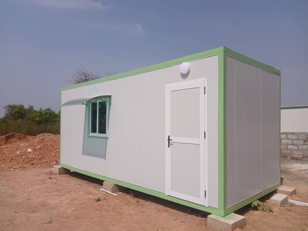 Construction de bâtiment préfabriqué à usage de bureau sur plate forme selon le plan du client.